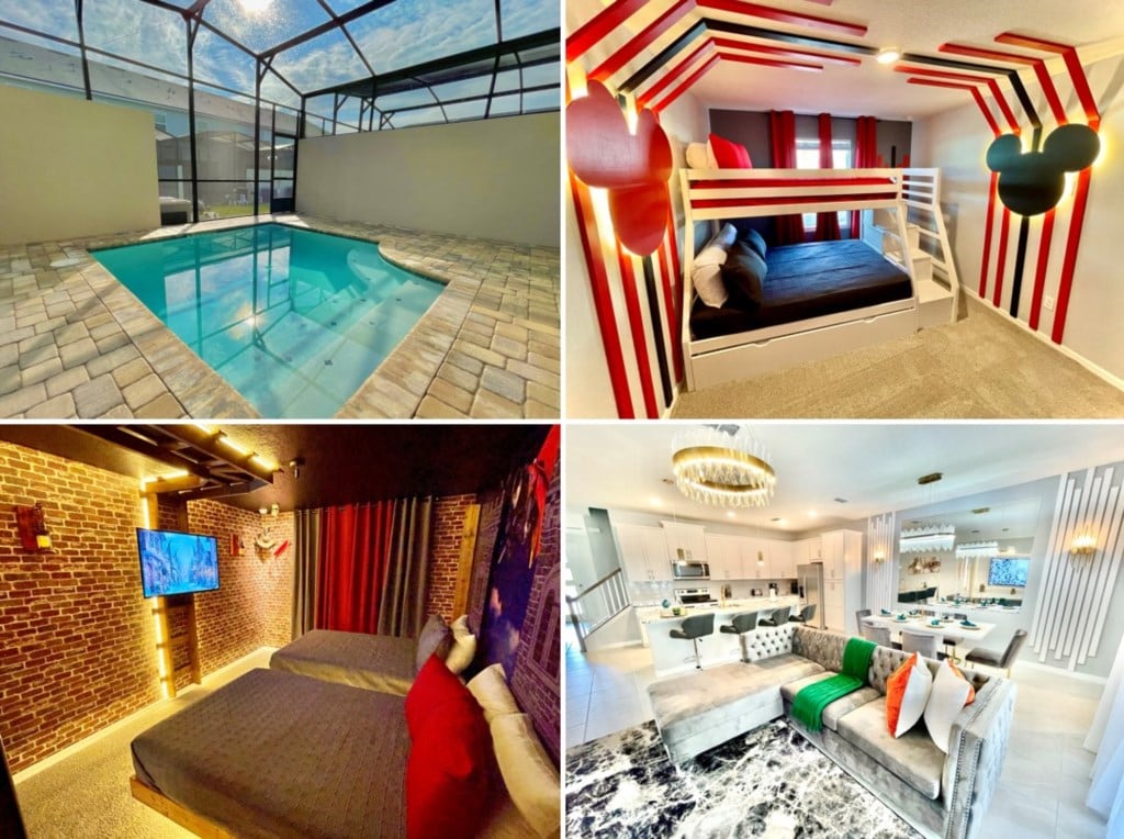 Disfruta de esta nueva y lujosa casa adosada inspirada en Mickey Mouse. Ubicada en una comunidad cerrada, a 12-15 minutos de los parques de Disney y cerca del entretenimiento más emocionante que ofrece el área de Orlando. La casa incluye 3 dormitorios, 3 baños, piscina comunitaria, gimnasio, zona de bbq y estación de carga para coches eléctricos.