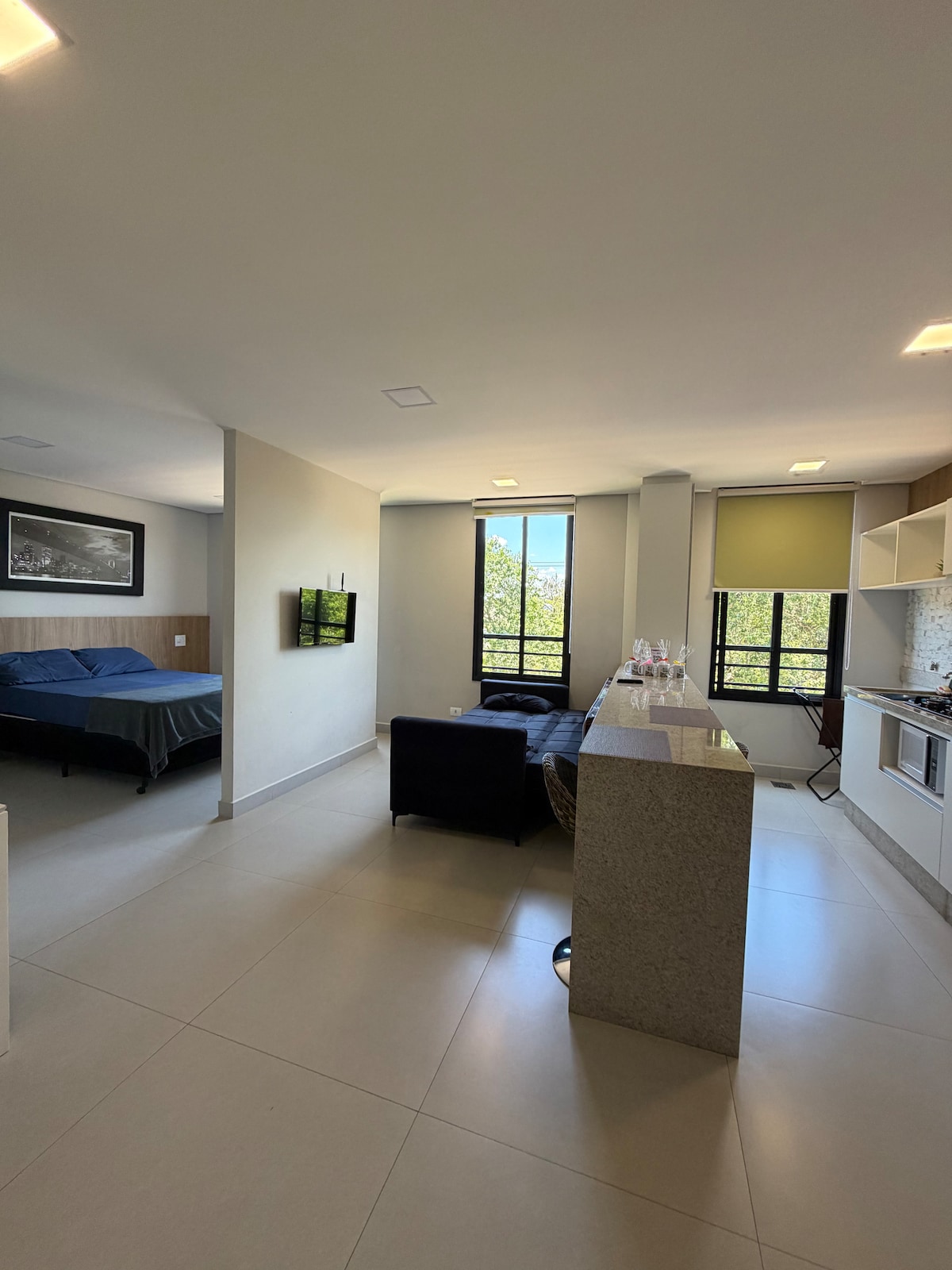 Olvídate de tus preocupaciones en este lugar tranquilo y espacioso. Tiene una cama doble y una cama individual, un televisor de 48" con un Firestick y una minicocina, que te permite preparar refrigerios y comidas pequeñas. A solo 500 metros de Av das Cataratas, está cerca del centro y de los principales atractivos de la ciudad. Ofrecemos check-in autónomo, estacionamiento cerrado, ropa de cama y toallas de baño.