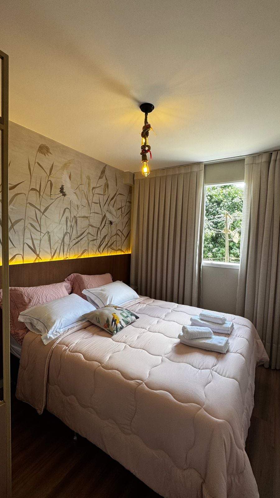 Apartamento novo, todo mobiliado e super aconchegante. Localizado na melhor região de Foz do Iguaçu, próximo a Avenida das Cataratas e dos melhores restaurantes, mercados e farmácias. Possuí utensílios de cozinha (panelas, talheres, taças, copos), Cafeteira, Airfryer, Sanduicheira, Microondas, roupas de cama e banho, sofá retrátil e fechadura eletrônica, Tv, Ferro, Grelha e Espetos. Vaga de garagem. Tudo pensado com muito carinho para que a sua estadia seja confortável e facilitada.