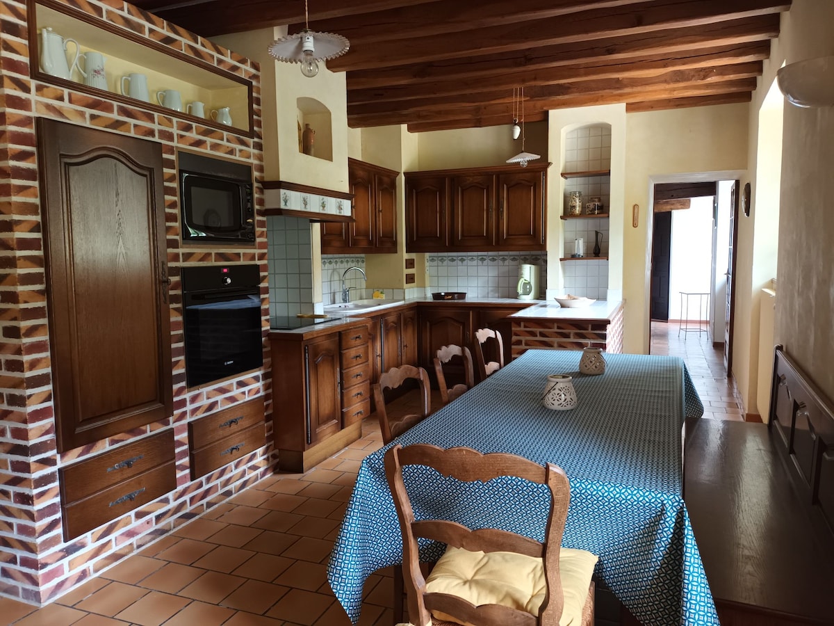 Bonita casa de entramado de madera, reformada de arriba abajo en 2010 con todas las comodidades, pero conservando toda su alma. Un lugar donde todo el mundo parece sentirse bien, con días de sol en el gran jardín orientado al sur, o cerca de la gran chimenea en invierno. 2 habitaciones acogedoras en el 1.º piso (1 con cama doble y 1 con 2 camas individuales), y abajo, después del gran salón/comedor de 50 m2, una pequeña oficina con 1 cama individual y una gran cocina equipada llena de luz. A pronto
