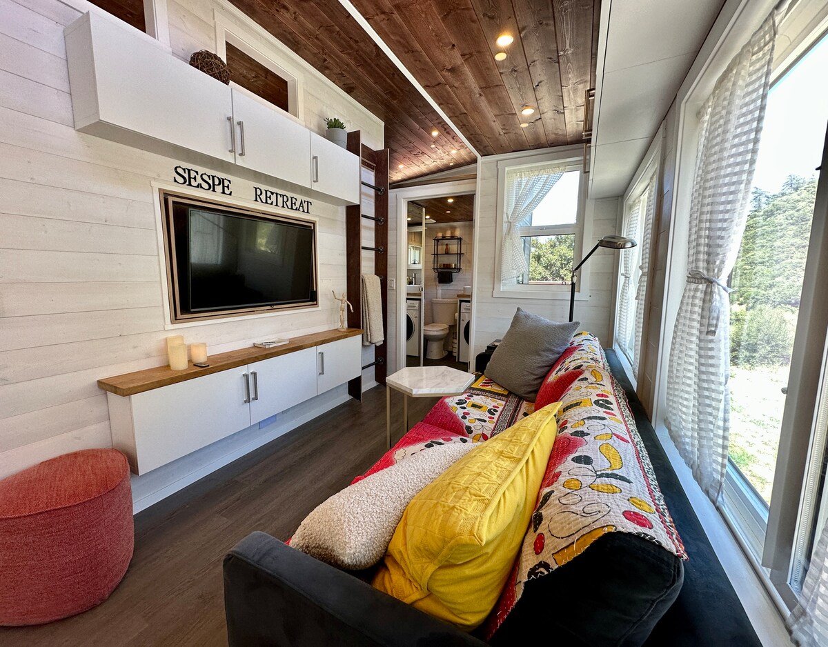 (Calentador de agua nuevo) ¡Increíble refugio de cabaña de montaña en un rancho de camélidos! ¡Disfruta de las llamas y guanacos, camellos y burros justo al lado de tu ventana y acarícialos desde tu patio privado! La experiencia privada en la cima de la montaña de 80 acres ofrece una vista panorámica del hermoso paisaje del sur de California. Ideal para contemplar las estrellas y hacer senderismo, increíbles amaneceres/puestas de sol. ¡Este es un paraíso para las 4 estaciones! Situado a solo 8 minutos de la Ruta 5, este refugio es bastante accesible (se necesita tracción en las 4 ruedas durante las nevadas invernales).