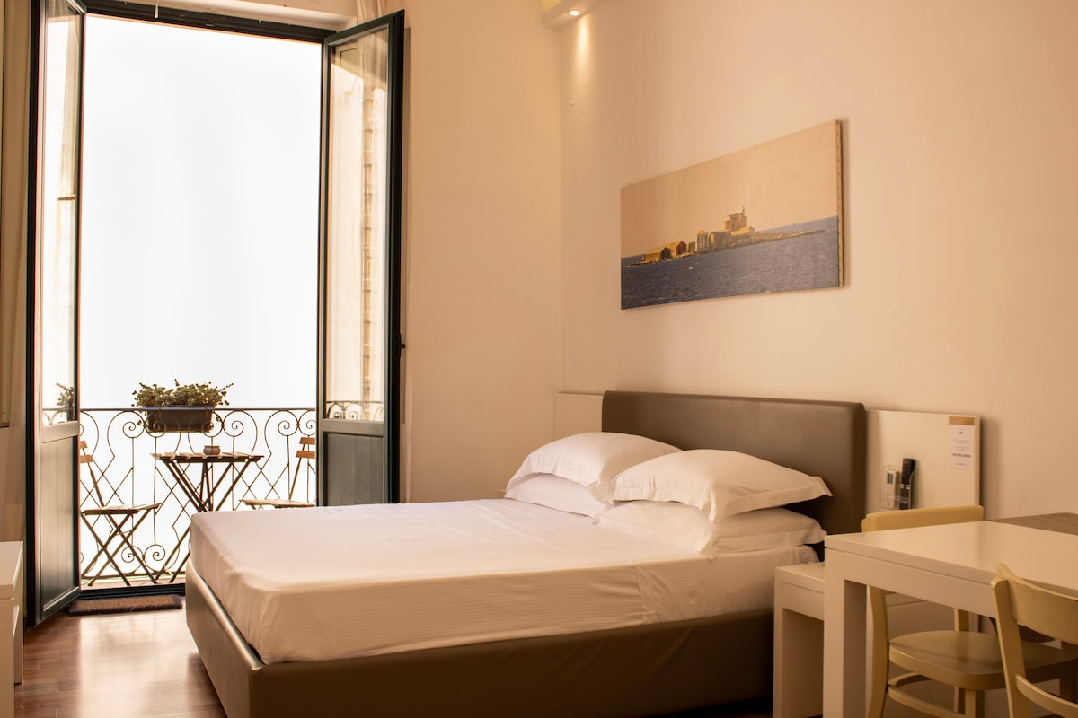 Apartamento estudio con balcón ubicado en el centro histórico dentro de un hotel de apartamentos equipado con WiFi gratuito, TV LCD, aire acondicionado, aire acondicionado, baño con ducha, baño con ducha, secador de pelo, secador de pelo y juego de cortesía, cocina americana equipada, minibar.