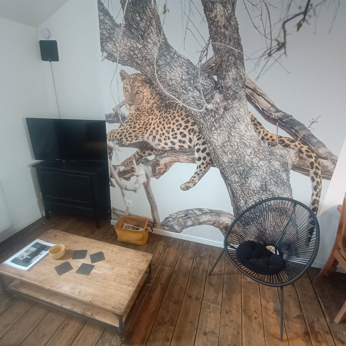 Alojamiento insólito La caravana está totalmente equipada, pequeña cocina que da por un lado a la cama y por el otro a la mesa de comedor, así como a la televisión, y por último al baño. La cocina está equipada con nevera, placa eléctrica, microondas y cafetera. En el jardín encontrará dos tumbonas con mesa y sillas para disfrutar plenamente del sol. También tendrá a su disposición una barbacoa de carbón. Lamentablemente, no se admiten mascotas.