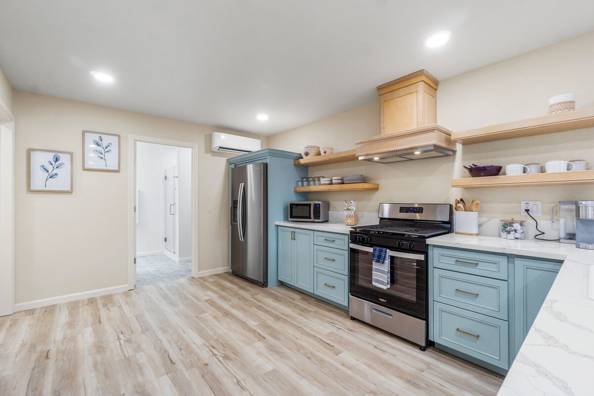¡Te damos la bienvenida a nuestro impresionante Airbnb en el noreste de Fresno! Esta joya contemporánea escondida ofrece estilo y comodidad. Descansa fácilmente en el colchón híbrido de espuma viscoelástica tamaño king o en el colchón de espuma viscoelástica tamaño queen. Disfruta de la cocina de diseño totalmente equipada, televisores inteligentes y wifi gratuito. ¿Necesitas trabajar desde casa? ¡No hay problema! Encuentra espacio de oficina aquí. Restaurantes/mercados a menos de una milla. Woodward Park, a solo 5 minutos. Parque Nacional de Yosemite, a 1,15 horas.