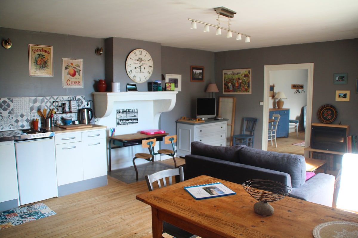 La Cottage Mâconnais es ideal para su estancia entre la ciudad y el campo. A 1h40 de París en TGV, a 50' de Lyon, le damos la bienvenida a un entorno verde con terraza y aparcamiento privados. La piscina no climatizada accesible de mayo a septiembre es común con los propietarios El alojamiento de 27 m² dispone de: Sala de estar con cocina, zona de comedor y sofá cama de 140 cm x 190 cm Habitación con cama queen size 160x200 cm con aire acondicionado Cuarto de baño Aseos separados Se proporciona ropa de cama (sábanas, toallas, paños de cocina)