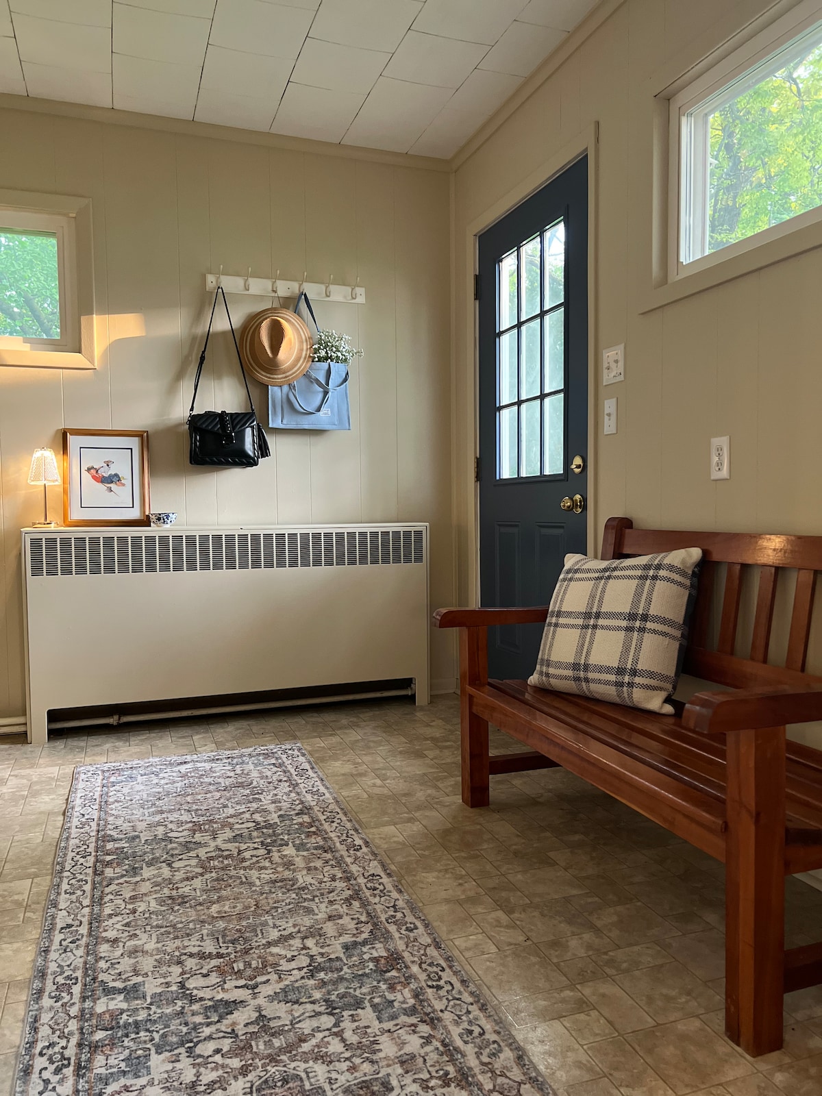 Escápate al campo en esta minicabaña luminosa y acogedora, prácticamente autónoma, situada en una ladera aislada y boscosa de nuestra finca de 44 hectáreas. Esta escapada en la naturaleza cuenta con el interior de una granja moderna con detalles rústicos. Tómate un momento para relajarte en el porche delantero en cómodas sillas Adirondack de estilo amish. Pon un disco y bebe una copa de vino mientras disfrutas de la puesta del sol. Perfecto para una pareja o persona que busca conectarse con la naturaleza, este refugio rural apto para mascotas es la escapada tranquila ideal.