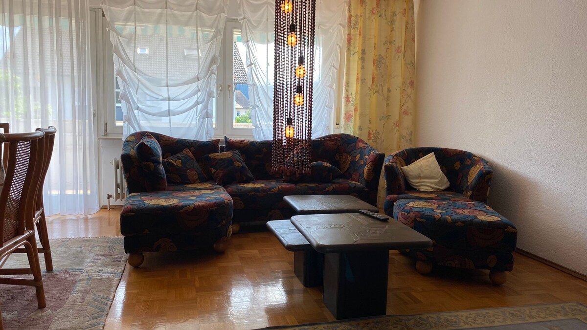 Departamento luminoso de 2 dormitorios (65 metros cuadrados) equipado con cocina, patio privado y muebles de salón. Tienes acceso a un jardín parecido a un parque bien mantenido. Ubicación rural con una variedad de rutas de senderismo cercanas. No hay más de 30 minutos en coche para llegar al centro de la ciudad de Baden-Baden, Karlsruhe o el río Rin. Próximo supermercado a 5 min. en coche en el pueblo vecino.
