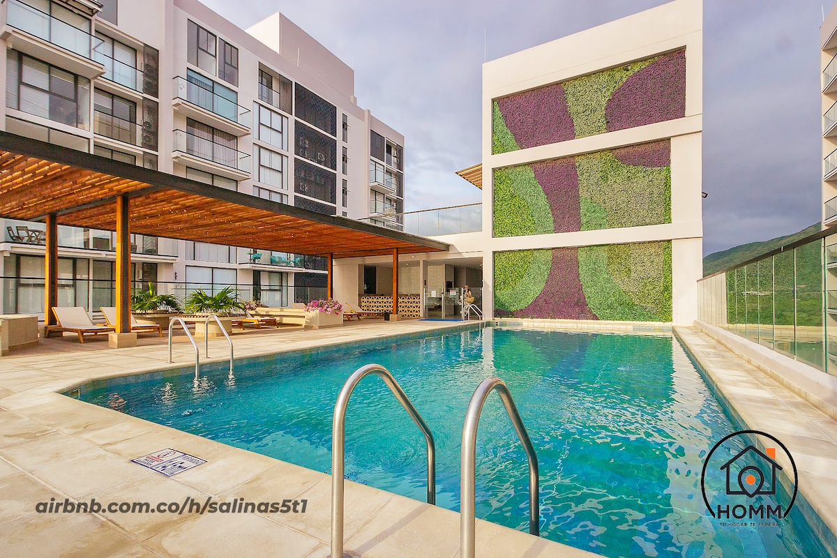 ¡Haz de tu estancia un recuerdo inolvidable! Disfruta de una experiencia única en este hermoso apartasuite moderno y versátil, a solo 100 metros del mar. Es acogedor e ideal para parejas o familias pequeñas, en el exclusivo sector de Playa Salguero, donde podrás disfrutar de actividades como running o ciclismo en las inmediaciones. Te invito a relajarte en la terraza del edificio, donde se encuentran las piscinas y podrás presenciar inigualables atardeceres, todo al mejor estilo de Airbnb.