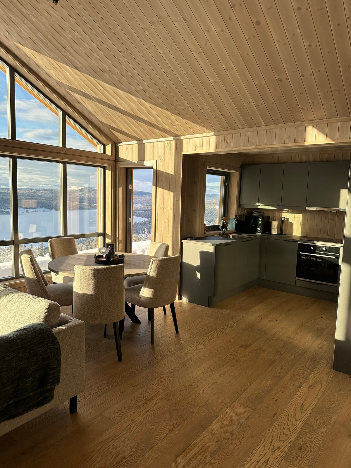 El cristal es un apartamento de esquí de 82 metros cuadrados que puede alojar hasta 5 huéspedes y, con dos dormitorios y un baño, hay mucho espacio para toda la familia o amigos. El departamento tiene una amplia sala de estar con grandes ventanales y balcón que te da vistas panorámicas de Gudbrandsdalen. Aquí podrás relajarte en cómodos sofás frente a la chimenea después de un día al aire libre. El plano de piso abierto también incluye una cocina totalmente equipada y otros servicios para que puedas sentirte como en casa durante tu estadía.