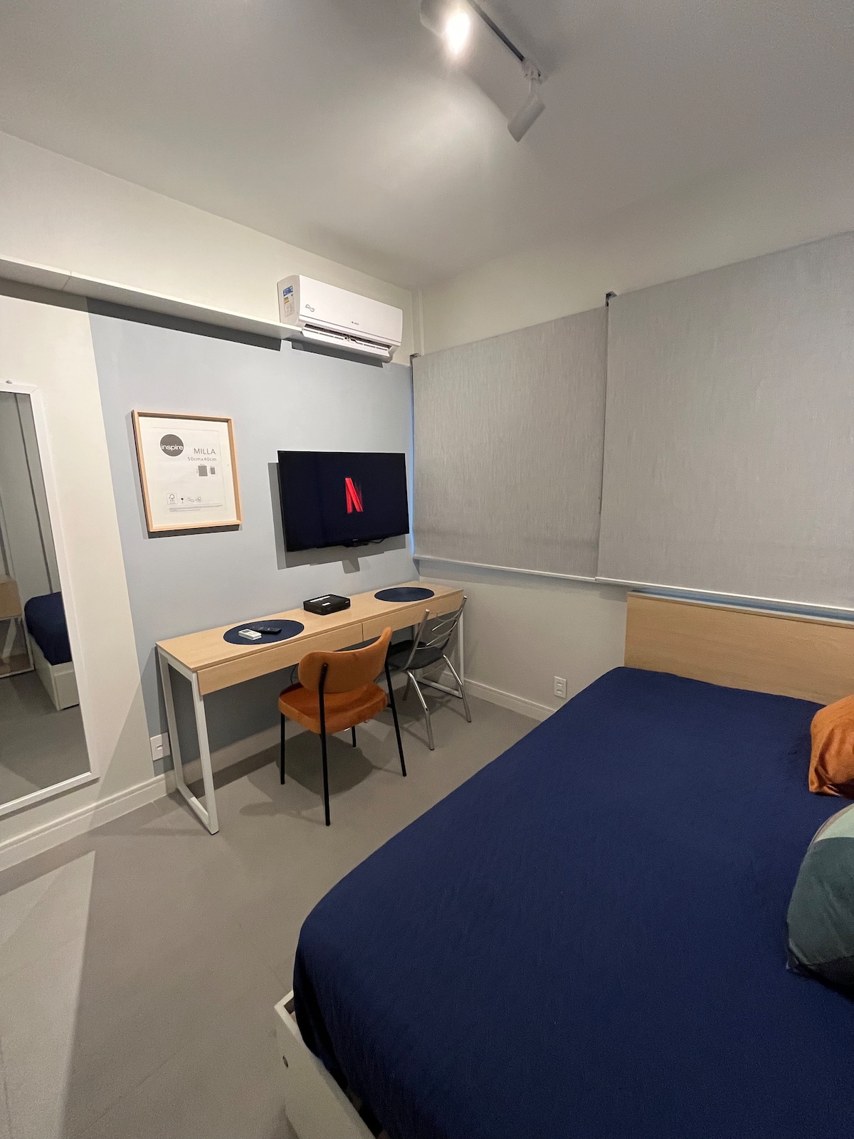 Un estudio recientemente renovado y decorado, con todo nuevo y equipado esperándote en el corazón de Porto Alegre. Un lugar especial y acogedor para satisfacer las más diversas necesidades de los viajeros de negocios y/o turismo, ocio, salud. Espacio privado que consta de baño y estudio con SOFÁ CAMA Tok & Stok súper cómodo, electrodomésticos, smart tv y aire acondicionado. Ubicado en un edificio con zonas comunes compartidas en un concepto Coliving de gran nivel.