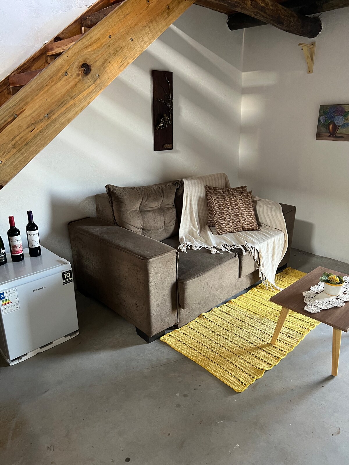 Suíte ampla e aconchegante, perfeita para casais com crianças. Acomoda 2 adultos em cama de casal, com espaço para até 2 crianças em colchões extras. Possui ventilador de teto, O hóspede tem acesso à cozinha coletiva, piscina, sauna e fire pit. Ideal para quem busca descanso e contato com a natureza.