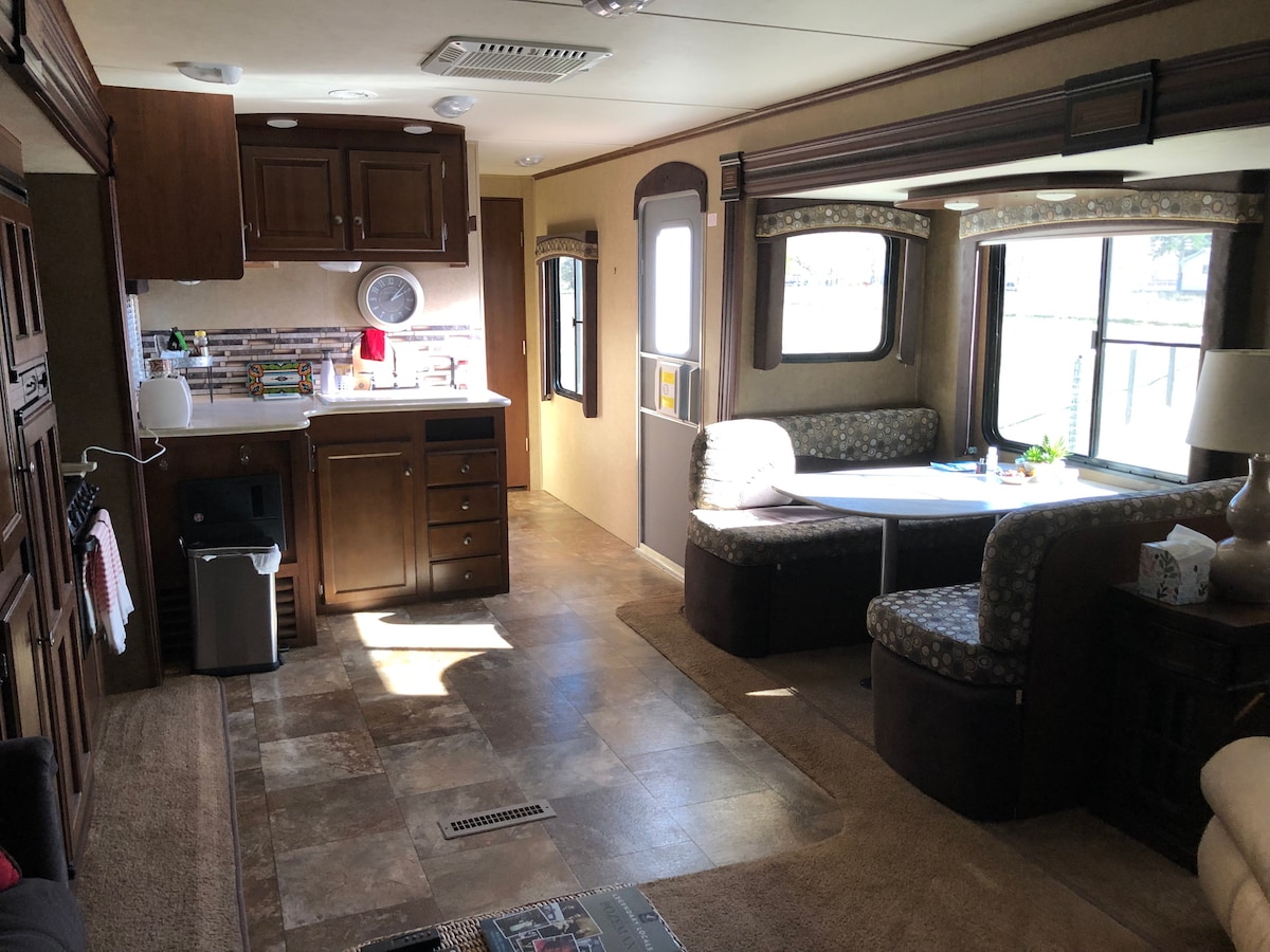Desconecta y disfruta del glamping en nuestro remolque de viaje de 37 pies. Nuestro glamper tiene los lujos que necesitas para tener una experiencia increíble en el país de Big Sky. Cuenta con un dormitorio tamaño king, TV vía satélite, cocina, chimenea, calefacción y aire acondicionado, TV vía satélite de pantalla plana grande, sillones reclinables estilo cine, ducha y un comedor estilo cafetería. Cuenta con terraza al aire libre, árboles de sombra, dos toldos, chimenea compartida y vistas increíbles. Comparte una propiedad de 2 acres con el alquiler vacacional Duck Destiny.