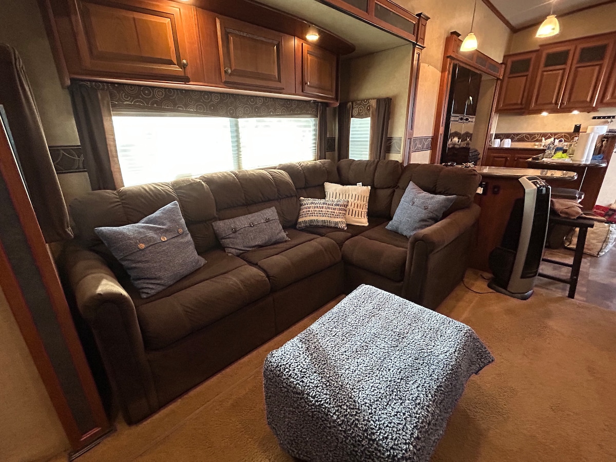 Come experience The Premier, an inviting RV minutes from downtown, hospitals & TXA&M Vic . Its clean interior boasts a King bed for resting. Guests will find a pleasantly laid-out living area with a sectional sleeper couch & recliners. Climate control for heat /AC keeps you comfortable while watching smart TVs or enjoying coffee next to the linear fireplace . Grab a meal nearby or cook In the stocked kitchen. Whether you’re looking to explore or relax, our hospitality will make you feel at home.