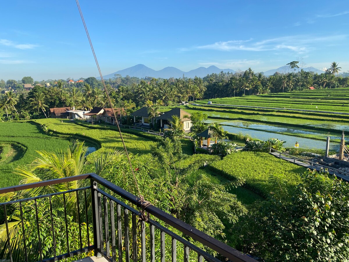 Auténtica suite de arroz en Bali con vistas al volcán