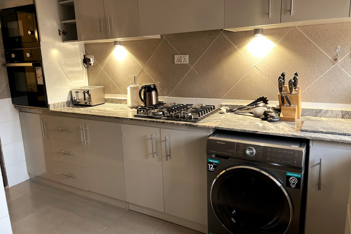 ¡Trae a la familia a este gran lugar con mucho espacio para la diversión y la comodidad! Casa semi inteligente con llaveros. Refrescos y agua complementarios. Cocina totalmente equipada con elementos esenciales para el desayuno. Electricidad 24/7 con generador solar y de respaldo. Wifi gratuito/televisores inteligentes/Xbox 1/Dstv/Netflix/tablero/juegos de cartas. Balcones privados y espacio de estacionamiento. Todas las habitaciones en suite, totalmente climatizadas. Circuito cerrado de televisión, extintor de incendios, botiquín de primeros auxilios Toallas/baño/artículos básicos de limpieza. Lavarropas/lavavajillas