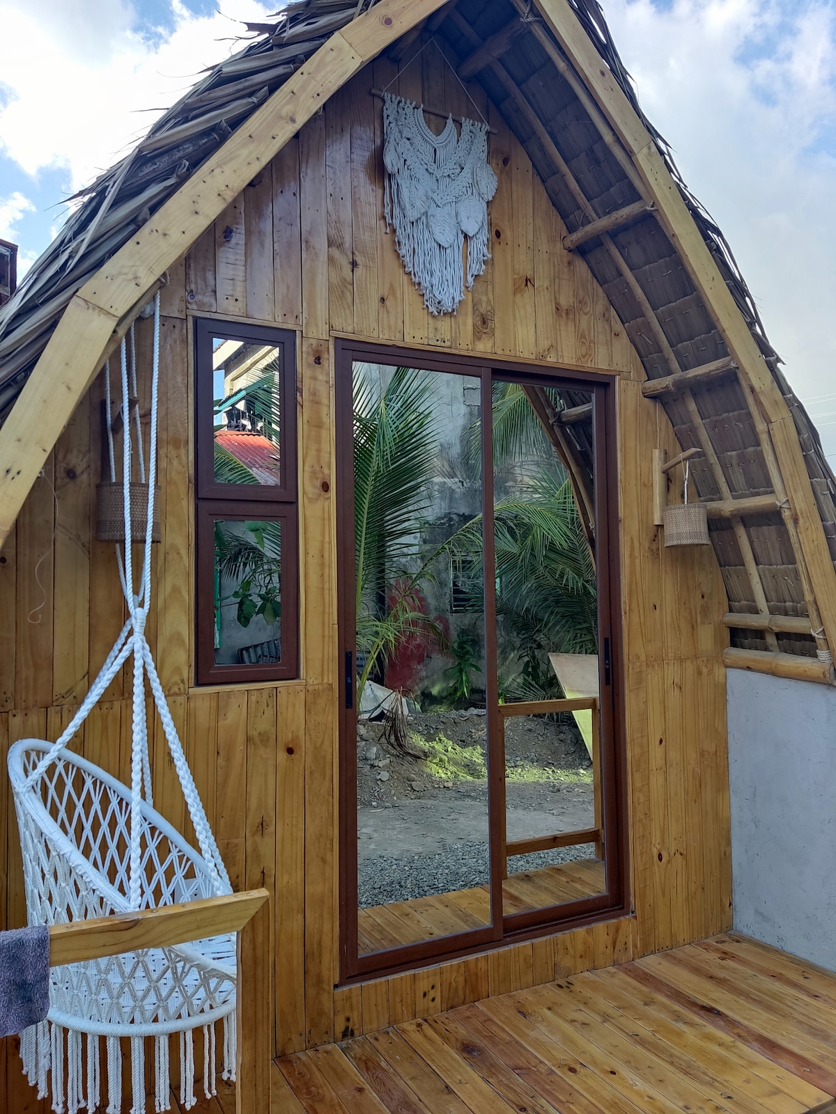 This is a dream cottage for adventurous romantics. It has a full-size bed (excellent for 1, snuggly for 2) , a view of the sea, a movable dining nook that overlooks the garden of Balai La-Hi. Sheets and towels are provided. This is an independent fan-cooled cottage beside the host house. Relax and feel the peace, You are safe here. Welcome home.