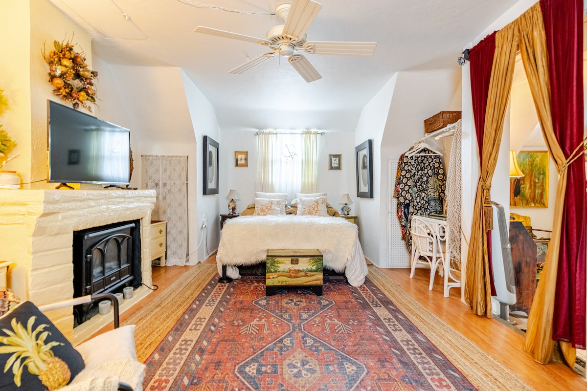 🛜500mbps+ WiFi 🏠Fully private + Private entrance 🌴Hammock Swings ☀️ Outdoor Patio 🦩Private Hot Tub 🥑Kitchenette w/ electric hot plate 😴King Size Bed Loft 📚Work Desk 📺 55 inch Smart TV + Roku ❄️ Cold A/C 🚘 1 parking space NOTE: Accessing the bed requires climbing a ladder. While sturdy and secure, it may not be suitable for guests with mobility limitations, so please consider this before booking.