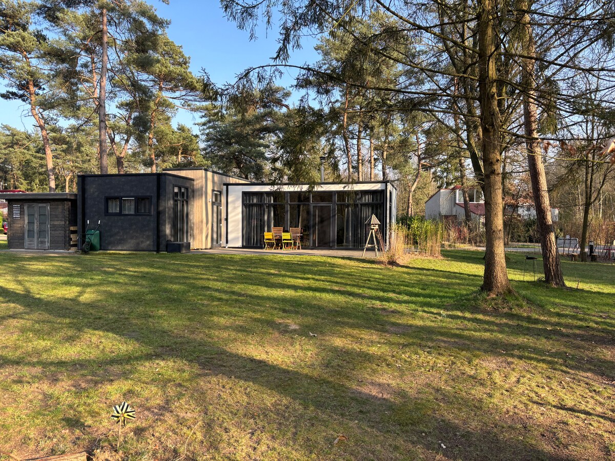 Hermoso bungaló moderno en el bosque con un gran jardín