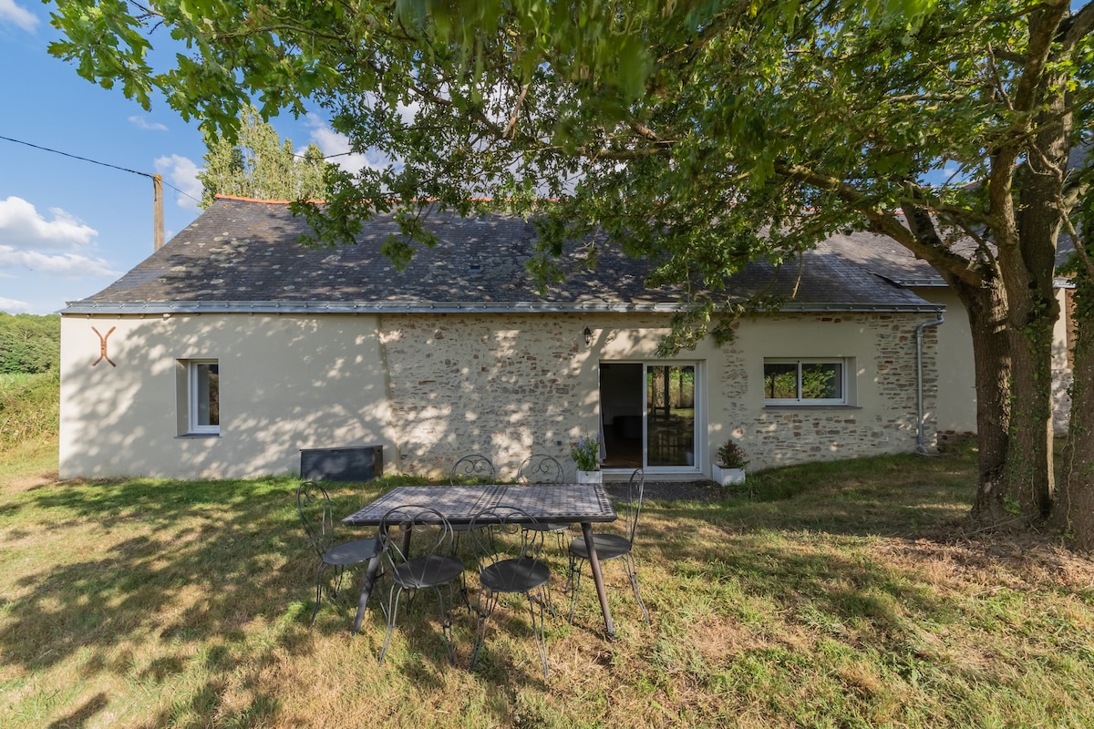 En familia o con amigos, venga a relajarse en esta casa de campo de 90 m2 en una antigua granja, en medio del campo. Esta casa acogedora y equipada le dará la bienvenida con sus 2 dormitorios + sofá cama de calidad, sus espacios exteriores privados cercados, tumbonas, barbacoa de carbón, estufa de leña, su caja de internet y TV. Estará idealmente situado a 17 minutos de Angers, a 45 minutos de Nantes, a 2 km de las tiendas y a 4 km de un estanque de natación (vigilado en verano).
