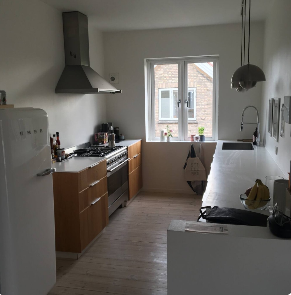 Bonito apartamento con balcón, jardín privado y cochera. Amplia sala de estar, amplia cocina totalmente equipada con comedor, dos dormitorios y un pequeño desván con cama en la sala de estar + unas madras adicionales. Con todo, espacio para dormir para seis personas. El departamento está ubicado en Gentofte, una hermosa zona verde, a poca distancia a pie del lago Gentofte. El centro de Copenhague está a 20-25 minutos en bicicleta y a 10 minutos en coche. La estación de tren S más cercana está a ocho minutos a pie.