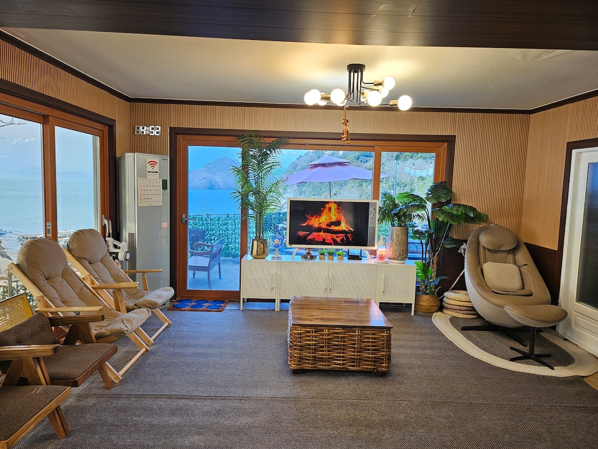 - El mar está solo en la casa y no hay casas cercanas, por lo que puedes divertirte hasta tarde sin ningún problema. - Los lugares turísticos de la ciudad, como el túnel submarino de Tongyeong, la terminal de cruceros, el mercado de Seoho, el templo de Chungryeongsa, el surf, el mercado central, etc., están a 5-10 minutos a pie. - El estacionamiento se puede hacer justo al lado de la casa, y se pueden estacionar hasta 3 coches con el sistema de estacionamiento doble. - Hay un gran supermercado a 3 minutos a pie, por lo que es conveniente para ir de compras. - Hay una tienda de conveniencia a 5 minutos a pie. - Lavadora, secadora, filtro de agua, tostadora, cafetera, secador, plancha, gel de baño, champú, acondicionador, pasta de dientes, jabón de manos, loción de manos, TV grande (86 pulgadas), Internet inalámbrico, altavoz bluetooth, etc. Todos los artículos necesarios para la vida están equipados. (Solo necesitas traer un cepillo de dientes ^ ^) Especialmente, hay una silla de masaje de la mejor calidad, que es muy buena para aliviar la fatiga del viaje. - También están equipados con condimentos básicos necesarios para cocinar.