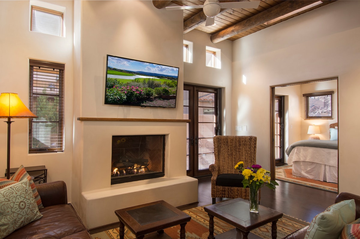 ¡Tan romántico! Esta nostálgica casa histórica de 1 dormitorio y 1 baño está escondida en privado detrás de paredes de adobe en una calle tranquila a pocos pasos del centro de la ciudad. Cargada con el encanto de Santa Fe: techos de vigas, una chimenea kiva de temporada, cocina completa y un hermoso patio privado con una cascada y un estanque koi. A poca distancia a pie del Railyard, la Plaza y la Canyon Road, llena de galerías. El wifi de alta velocidad y el aparcamiento fuera de la calle harán que tu estancia sea sin estrés. Cerca de todo, pero tranquilo y privado. ¡Mágico!