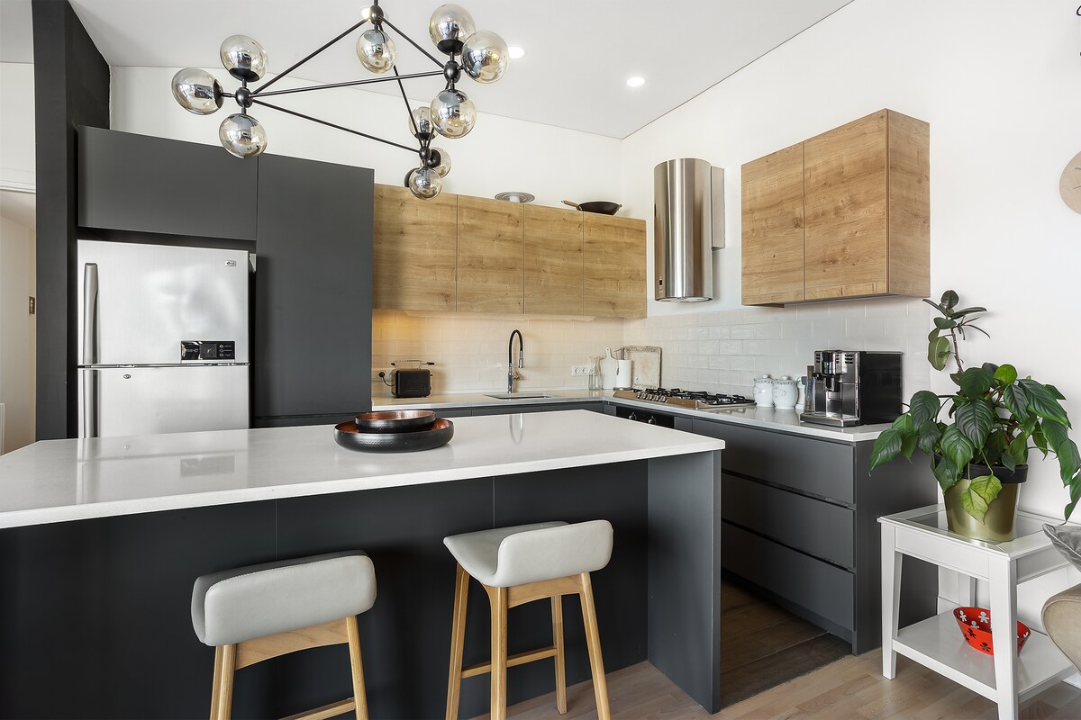 Bienvenido a nuestro impresionante apartamento en el último piso, a pocos segundos de la vibrante calle David Aghmashenebeli y del metro Marjanashvili. Perfectamente equipado con todas las comodidades imaginables, ¡solo tienes que traer tu ropa y tu cámara! Experimenta el máximo confort con nuestras camas de primera línea con sábanas frescas. Disfruta de una vida sin complicaciones con un lavavajillas, lavadora y secadora, barra de café. Relájate frente al televisor de 65 pulgadas o sal a los dos balcones para disfrutar de impresionantes vistas del amanecer o del atardecer. ¡Las vacaciones de tus sueños empiezan aquí!