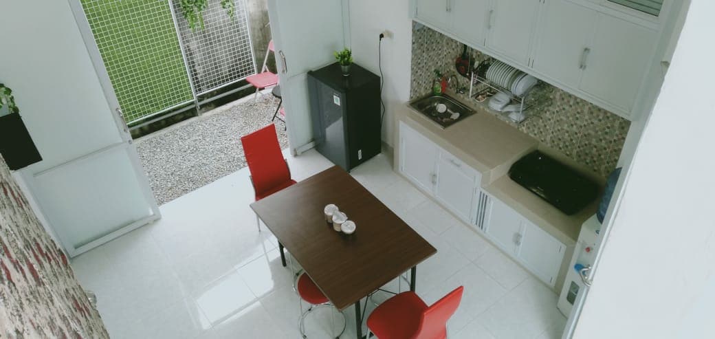 Esta casa arquitectónica moderna-tropical-simalista es una propiedad recién terminada en junio de 2018. Tiene 2 pisos donde el piso superior sirve como un área privada en forma de una habitación, y la planta baja sirve como un área pública en forma de cocina (completa con equipo), un comedor (con dispensador), una sala de estar, un baño y una terraza. Además, la casa está cerca del centro comercial Puncak y el centro culinario a una distancia de aproximadamente 250 metros.