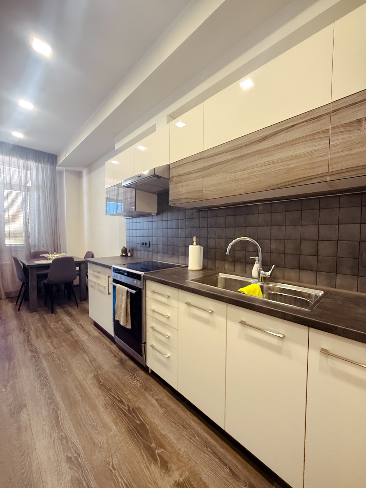 ¡Te damos la bienvenida a Yerevan4you Terrace! Este departamento bellamente renovado está en un edificio moderno en el corazón de Ereván, a solo 5–7 minutos a pie de la Plaza de la República. Estarás a pocos pasos de una amplia variedad de restaurantes y cafeterías que ofrecen cocina europea, asiática y tradicional armenia. El departamento cuenta con: - Wi-Fi de alta velocidad - Televisión con cable - Aire acondicionado - Cocina totalmente equipada con microondas, nevera, lavavajillas, hervidor eléctrico, lavadora y mucho más.