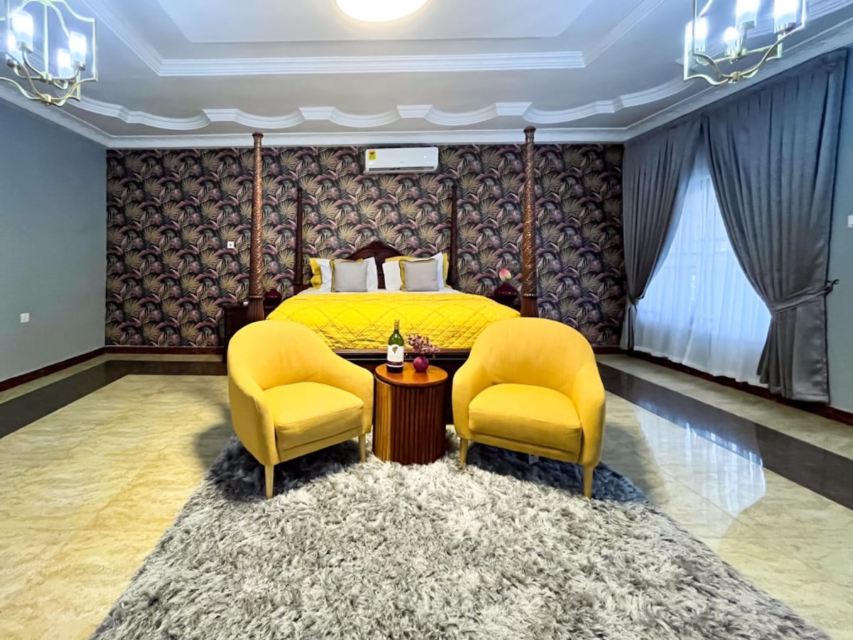 Te damos la bienvenida a tu centro vacacional privado en Accra. Nubian Villa ofrece una piscina infinita privada, un jacuzzi de 36 chorros con su propio bar y sillas colgantes, un gimnasio totalmente equipado y servicios de chef seleccionados, todo dentro de una residencia segura y lujosa de 4 dormitorios. Diseñada para familias, ejecutivos y viajeros exigentes, la villa combina privacidad, comodidad y un servicio impecable, que incluye recogida en el aeropuerto y un generador silencioso de reserva para un suministro eléctrico ininterrumpido.
