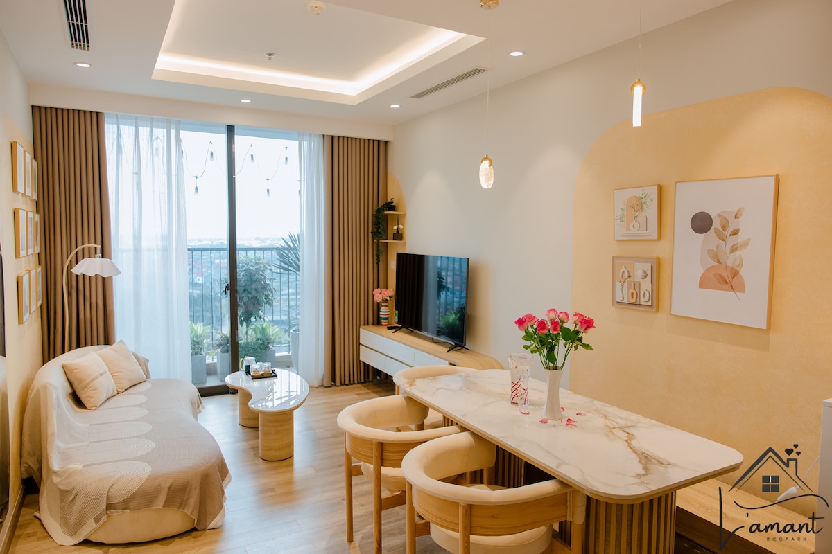 QV Homestay LANDMARK- Full 🏡 furnitures, amenities: washing machine, drying clothes, kitchen appliances, Toto electronic bidet...QV Homestay will be a suitable choice for sweet couples, married couples, small family, etc. 18km away from Hoan Kiem Lake - Center of Hanoi Capital (HN) has a very unique green city, Ecopark, where there is no noise and dust in the city, only trees and flowers blooming with sunshine, light wind beautiful and peaceful lakes, wonderful Japanese sauna and gardens...