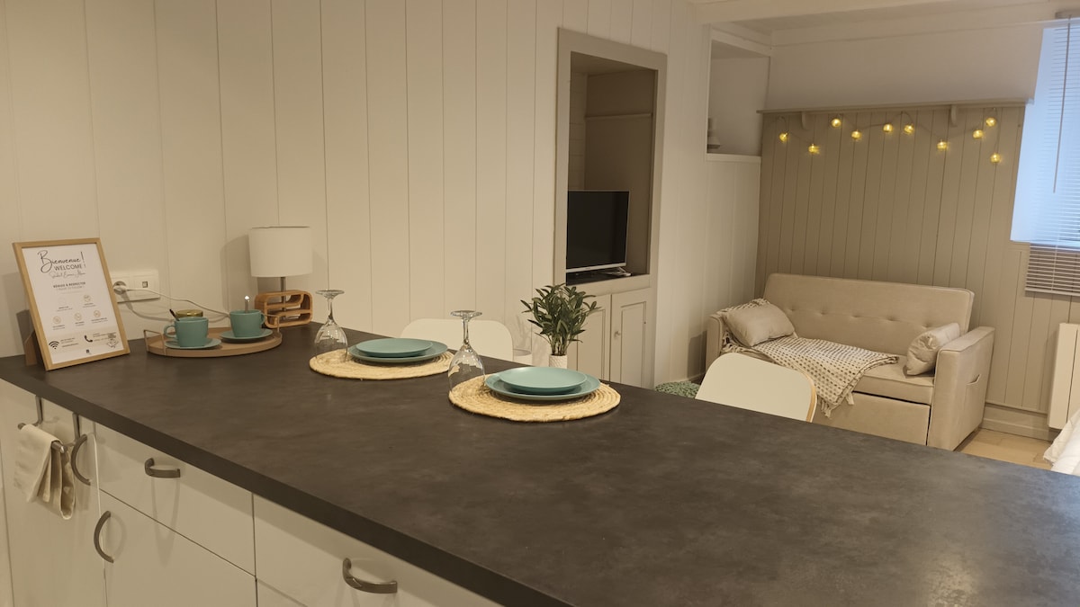 Estudio independiente de 26 m2 con zona de noche separada en una casa unifamiliar con terraza sur en el borde del bosque. La cocina y el suelo se renovaron por completo en abril de 2023. Para 2 personas totalmente equipado ( Cama 140, lavadora, lavavajillas, nevera con congelador, microondas, placas de inducción, Nespresso, aspiradora Dyson, tostadora, hervidor de agua, TV, Wifi) A 300 metros del carril bici, a 2 km del lago de Annecy, a 800 metros de la base de parapente y del centro del pueblo