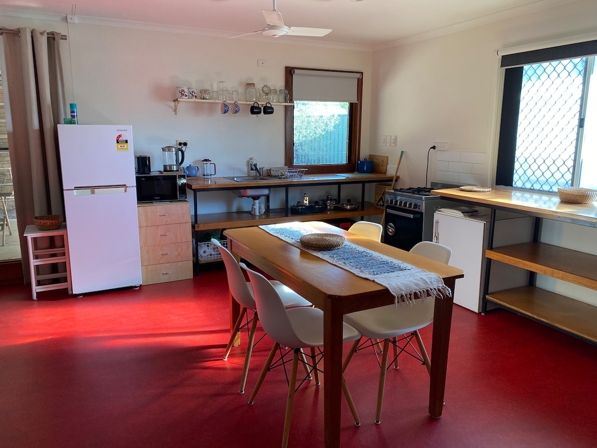Únicamente Mparntwe-Alice Springs, en el corazón de Gillen, una mini casa de 2 dormitorios y un baño con un amplio patio para ti y tus amigos viajeros. Es acogedor y cómodo, y hay suficiente espacio para traer a tus mascotas. Comparte tu taza de té por la mañana o tu visita al atardecer por la tarde con los mini pollos: ¡es el punto de partida perfecto para planificar y restablecer después de tus días de exploración en Australia Central!