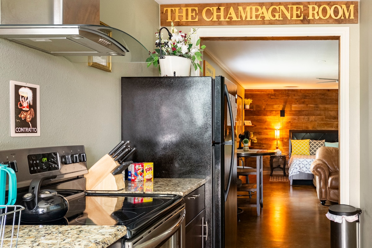 Estamos obligados a recaudar y pagar un impuesto local de ocupación adicional del 7 % para esta reserva a través del Centro de resoluciones. En Vintner's Vault te recibiremos con agua embotellada y aperitivos después de tu día de viaje. Relájate en el patio o en el cenador frente al agua. Despiértate renovado por la mañana y toma el desayuno y el café Keurig antes de salir a explorar Hill Country. Tenemos mucho cuidado de desinfectar las superficies que se tocan a menudo entre reservas.