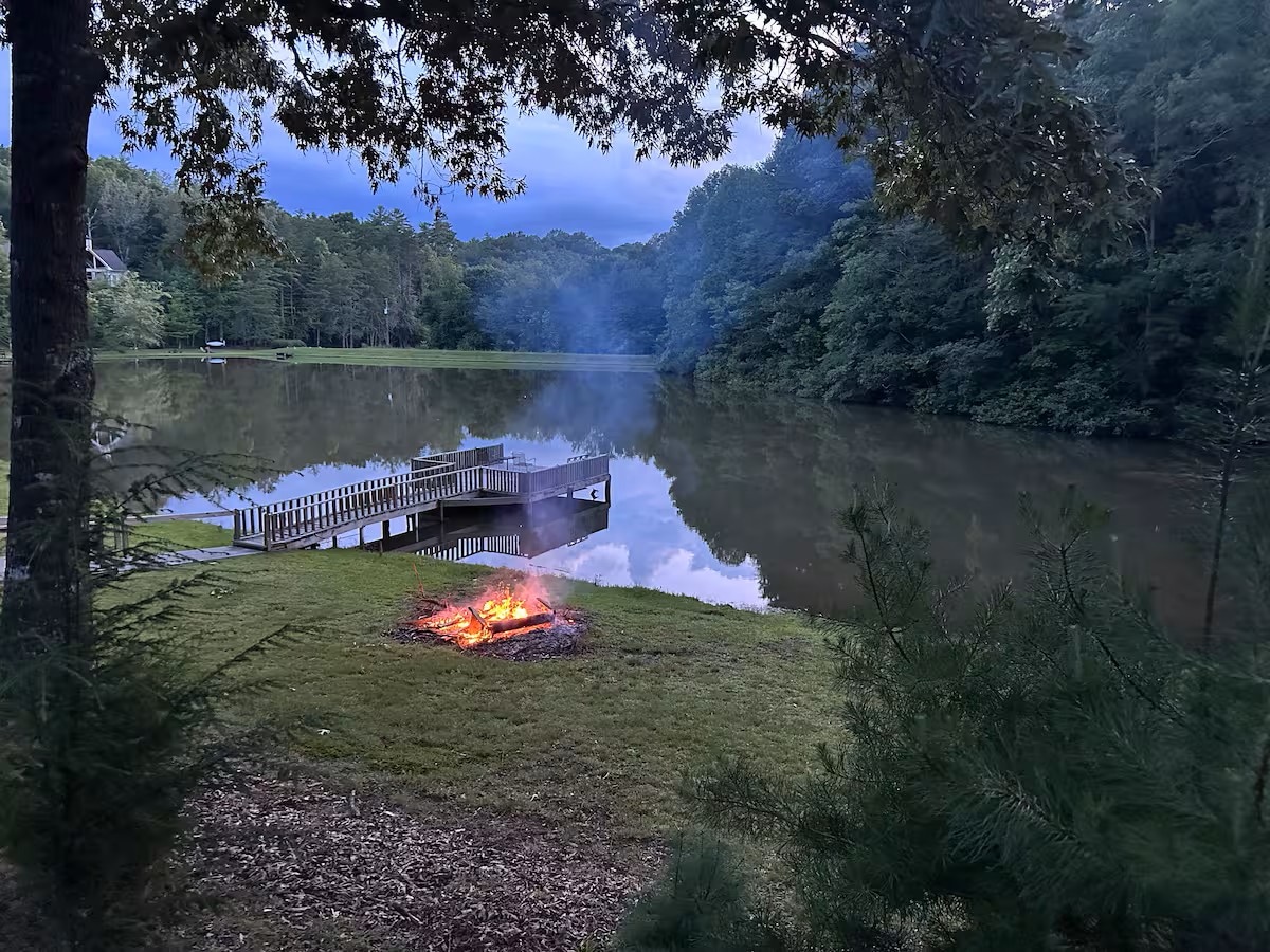 Disfruta de vistas al lago y a la montaña en este oasis actualizado entre los árboles. Tanto si buscas una aventura al aire libre como una escapada rejuvenecedora, ¡lo tenemos todo! Situado en un lago de cinco acres, disfruta del muelle privado y del uso de nuestras dos tablas de remo y canoa. Después de un día de senderismo, desconecta en el jacuzzi y la sauna. Hay mucho espacio para reunirse tanto en el interior como en el exterior. Esperamos que disfrutes de todas las comodidades modernas mientras te reconectas con la naturaleza. ¡A solo 12 minutos del centro de Ellijay!