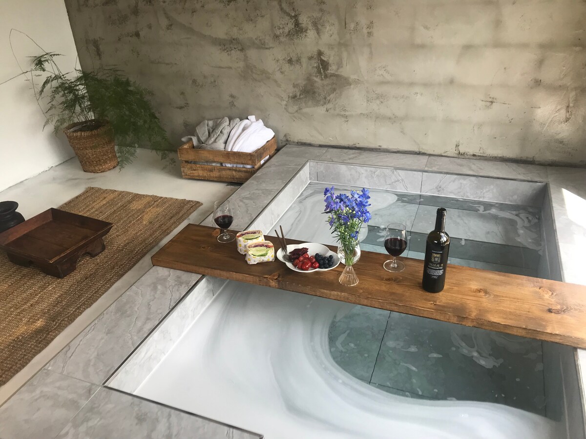 Built in 1866, this authentic Jeju stone house (Hanok style) has been renovated with all modern comfort. Nestled among Gimnyeong alleys, situated on Olle trail no. 20, only 3 mn drive from Gimnyeong beach, it is the perfect place for you to enjoy the authentic island lifestyle. This healing retreat gives you exclusive access to a private house (Ankkeori, courtyard house), and exclusive outdoor hot tub. You will have access to a garden and separate kitchen. Free street parking. Roberta/Youngsoo