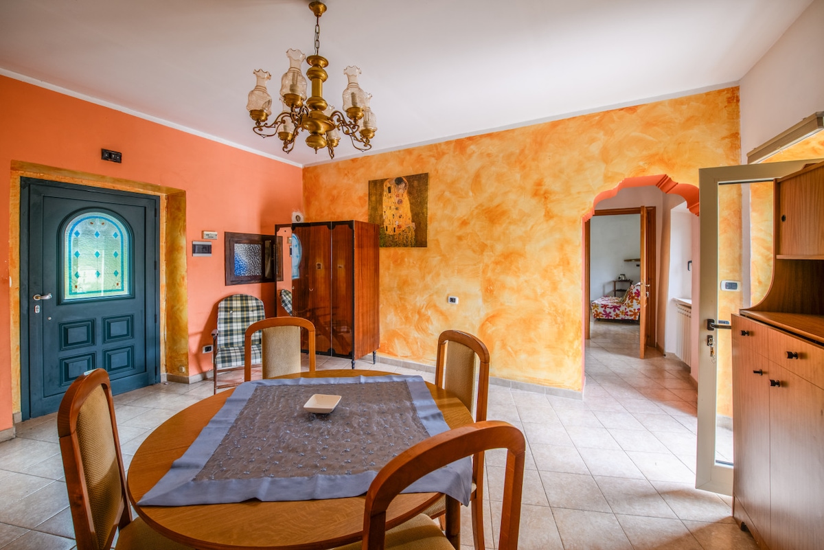 Tiene capacidad para seis personas e incluye una terraza, entrada, sala de estar, cocina, dos dormitorios y dos baños. Incluye sauna de infrarrojos, cenador, piscina panorámica, zona de juegos y jardín vallado con perrera, se permiten mascotas. Tiene un jardín rural accesible para los huéspedes. Está equipado con aire acondicionado, wifi, una biblioteca en el Abruzzo, un sistema fotovoltaico con almacenamiento y una estación de bicicletas eléctricas. Se encuentra fuera del centro de la ciudad, rodeado de vegetación y el silencio de la naturaleza.