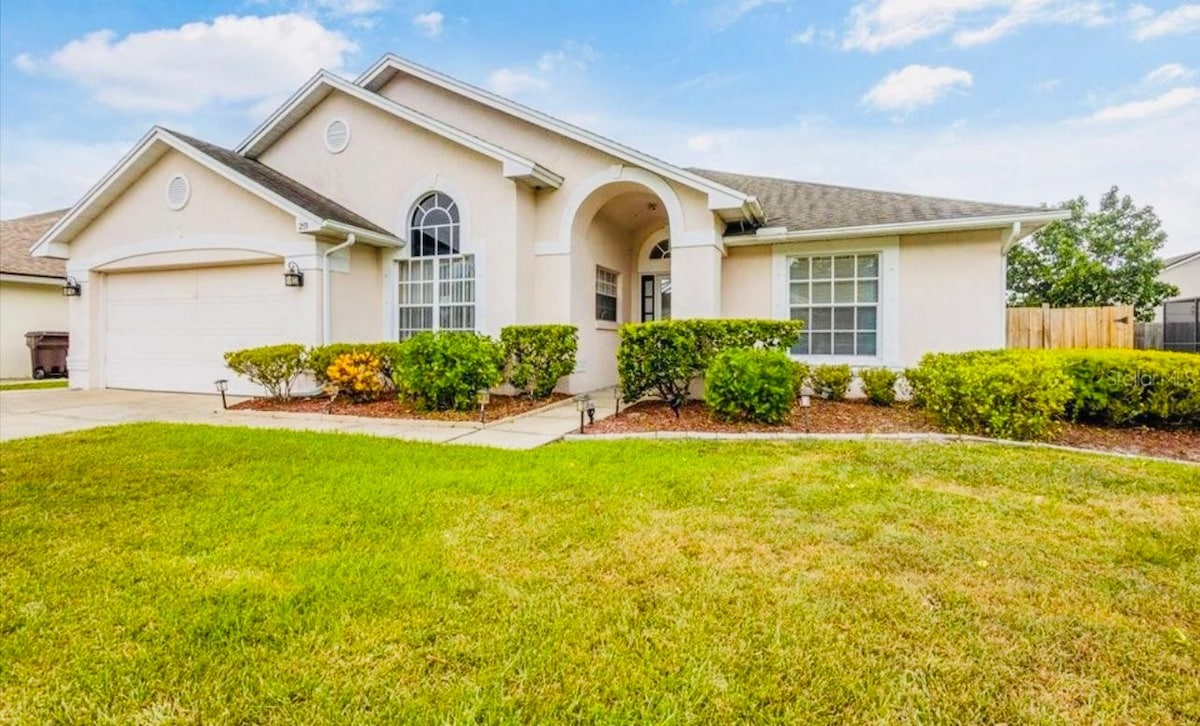 ¡Amplia casa de 4 dormitorios con piscina privada climatizada, a 15 minutos de Disney! Disfruta de una gran piscina orientada al sur, parrilla de propano, televisores inteligentes con Disney+ en todas las habitaciones. Nintendo Switch en el salón y una pantalla de85pulgadas con una PS5 en un garaje /sala de juegos con temperatura controlada. Wifi rápido, tejo, mesa de billar y muchos juegos de mesa. Diversión 🌴 al aire libre Asientos en el patio para 14 + dos tumbonas. Parrilla de propano: $50 por la duración de la estadía Calefacción de la piscina: $ 200 por estadía (aviso de 24 horas)