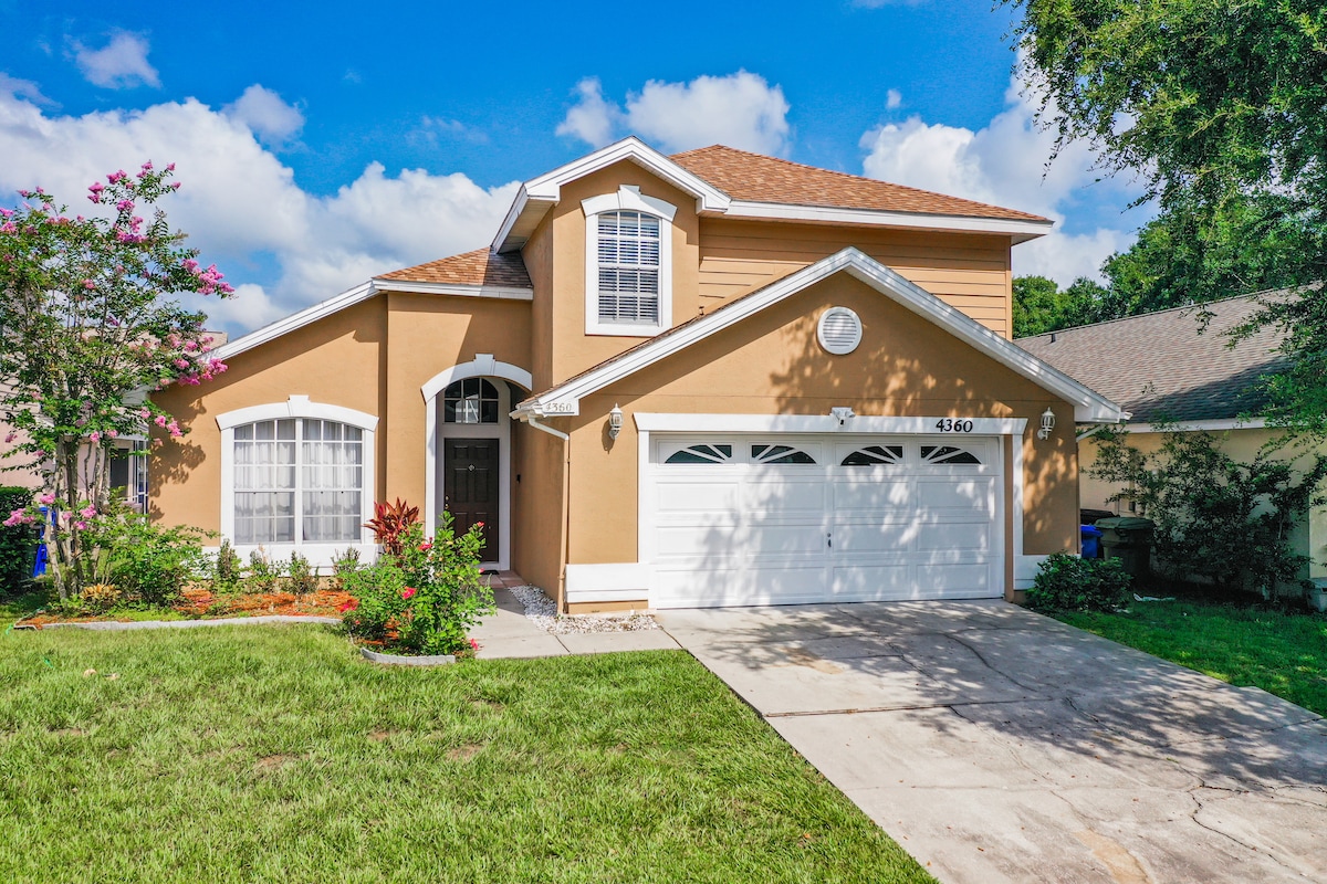 ¡Ubicación! ¡Ubicación! ¡Ubicación! A solo 10 millas de Disney. 4 dormitorios, 3 baños. 2 dormitorios principales con cama tamaño king. Gran piscina privada con patio cubierto. Patio totalmente vallado. Sala de juegos: mesa de billar, hockey de aire, baloncesto. Televisores con ROKU Streaming en TODAS las habitaciones. Wifi gratuito. ¡SIN ALFOMBRA! Aire acondicionado central. Calefacción de la piscina de gas disponible por un cargo adicional. * Tenemos tarifas y restricciones para mascotas. Ponte en contacto con nosotros antes de reservar la casa para obtener más información.