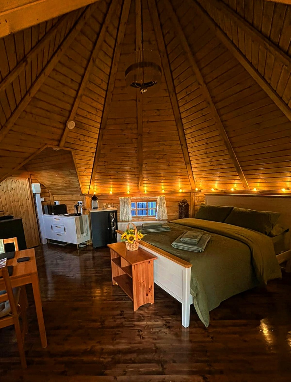 De nueva construcción y moderno, con todo lo que necesitas, incluido un televisor de 50 pulgadas, una gran ducha a ras de suelo y vistas al lago desde tu zona de estar privada al aire libre. Como parte de The Oak Tree Inn, puedes caminar metros hasta un acogedor bar y restaurante que sirve excelente comida y bebida escocesa. Nuestras cápsulas superiores ofrecen tranquilidad y un merecido descanso y relajación. Cada cápsula cuenta con una lujosa cama tamaño king y un cómodo sofá cama para mayor flexibilidad; estas cápsulas no son independientes.
