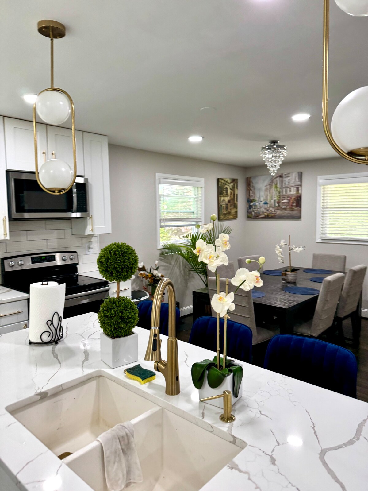 UN HALLAZGO EXCEPCIONAL: ¡Habitación y baño en el nivel principal sin escalones! ¡Te damos la bienvenida a tu elegante refugio en D.C.! Esta casa de 5 dormitorios y 4 baños totalmente renovada ofrece 325 metros cuadrados de vida de concepto abierto, a solo 3 minutos del metro y a 10 minutos de la Casa Blanca. Disfruta del estacionamiento gratuito en la calle. Perfecto para familias o viajeros de negocios con un dormitorio en la planta principal, cocina de chef, salas de estar dobles, Wi-Fi rápido y televisores inteligentes. Reserva tu estadía hoy y experimenta D.C. con comodidad y estilo.