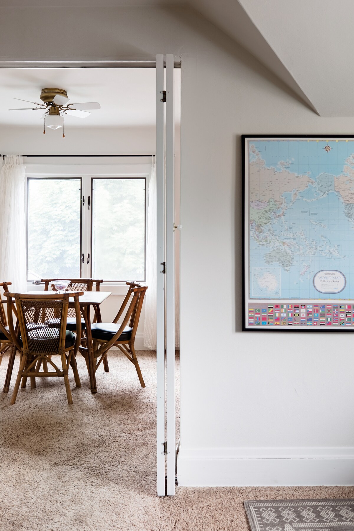 El loft en Butler Place es un refugio hermoso y tranquilo ubicado en el suburbio rural de Sussex, a solo 30 minutos al oeste de Milwaukee. La casa es la granja de 1846 de la familia William Butler, ¡lo que hace que la casa sea más antigua que el estado de Wisconsin! La remodelación de 2019 del loft tiene un sofisticado estilo rústico y rinde homenaje a la historia de la casa en su mobiliario, piezas recicladas y hermoso entorno. «Lo roto se vuelve bendito» dice y obliga como una invitación a todos.