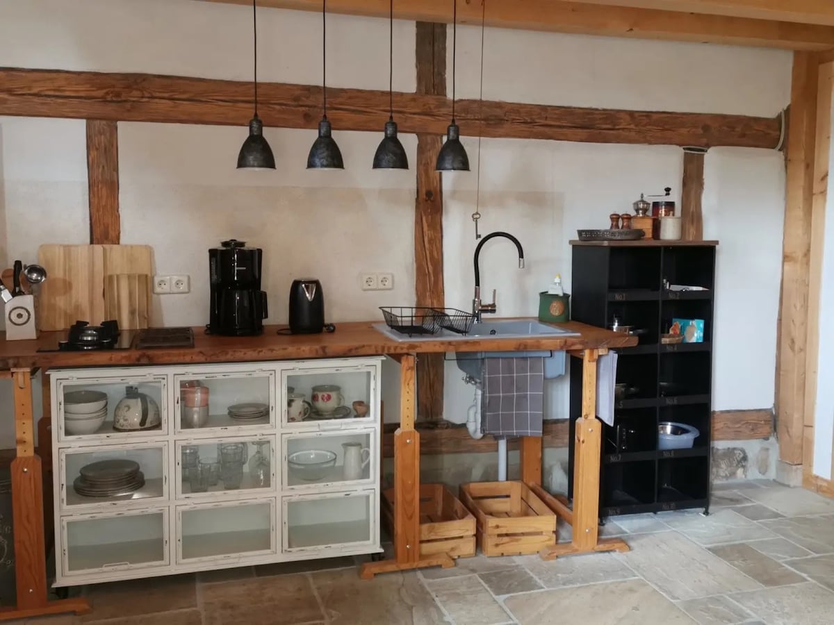 Steffi's Hof - Alegría para todo el año Esperamos a las familias y, por supuesto, a los niños, que viven con nosotros de forma gratuita hasta los seis años. La granja está situada directamente en el arroyo Cunnersdorfer y ofrece, además de los dos apartamentos, paz, relajación y naturaleza pura en el Parque Nacional de la Suiza sajona. Nos encanta cocinar para vosotros y también ofrecemos cursos de cocina en nuestra escuela de cocina. Estaremos encantados de enviarte el programa actual y que veas las fotos aquí en Airbnb.