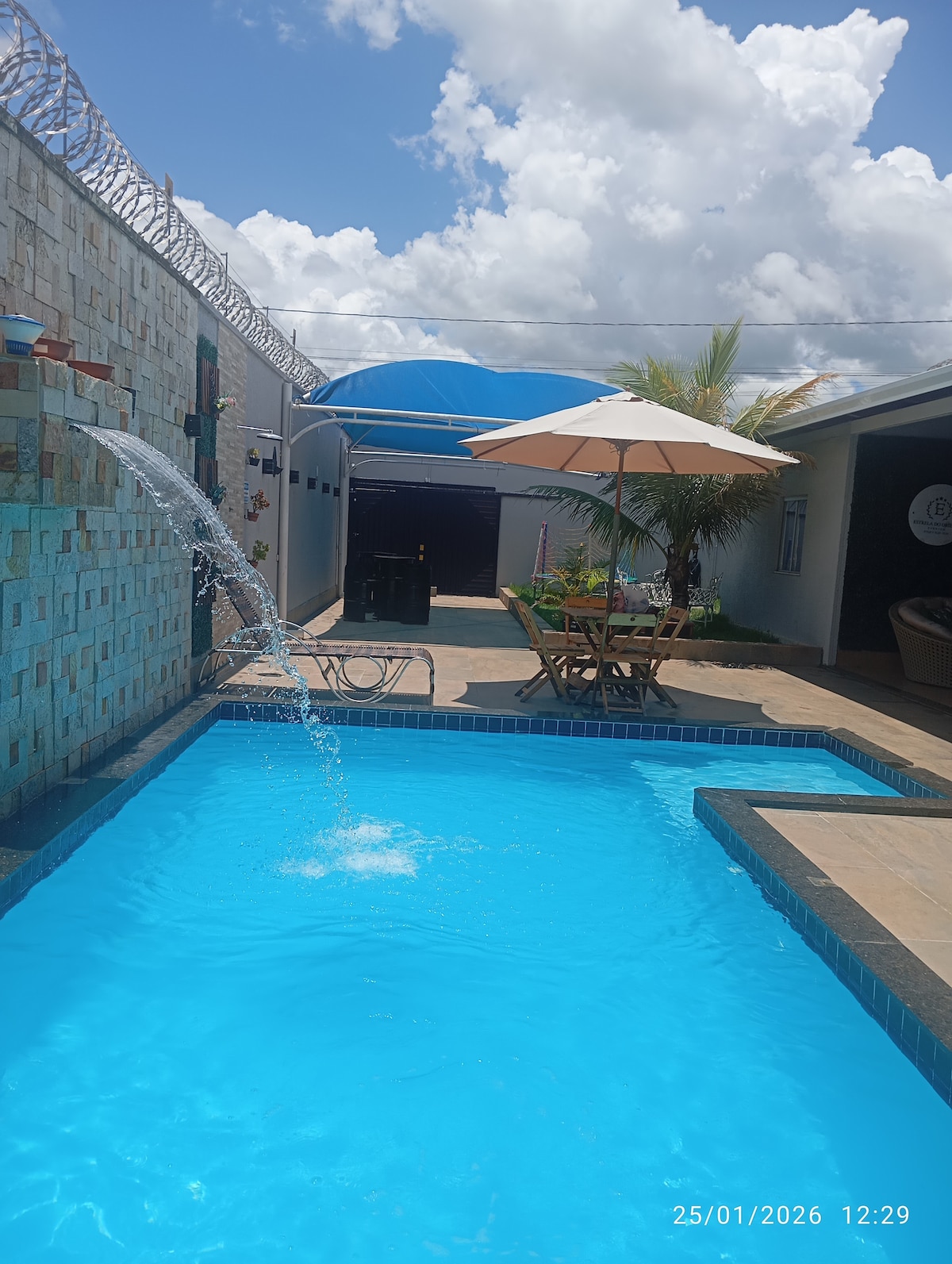 Leve toda a família a este ótimo lugar com muito espaço para se divertir. Espaço de festas e eventos completo •Piscina com cascata e hidromassagem •Sinuca •Cozinha completa com churrasqueira •Fogao industrial com gás incluso •2 freezers •10 jogos de mesa incluso • Quarto com 2 camas (1 de casal e uma de solteiro) •Pula-Pula •2 banheiros