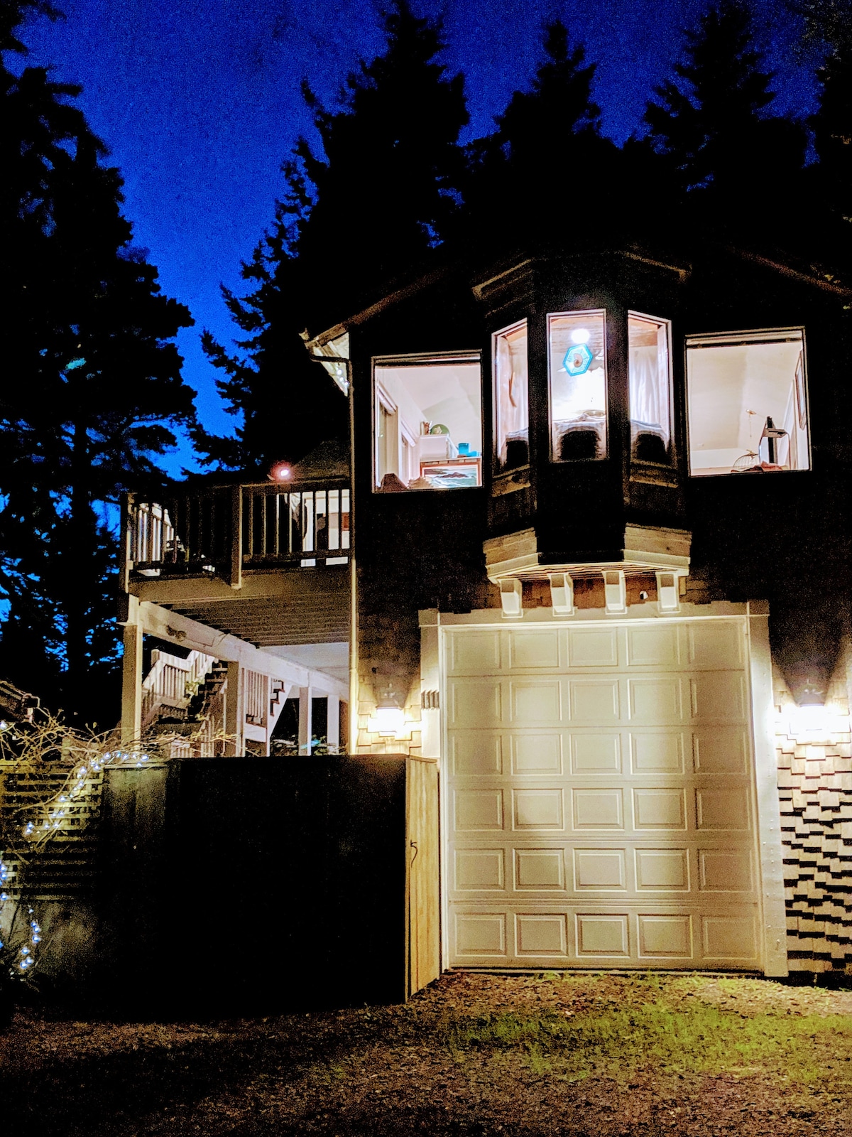 Wild Coast Lookout, situado en el hombro de una antigua pila marina, ofrece privacidad y una vista espectacular de la costa de Oregón. Con frecuencia se ven halcones y búhos en los árboles de la propiedad y, por la noche, mientras te sumerges en el jacuzzi, disfrutarás del sonido de las olas del mar y de un coro de ranas en el estuario de abajo. El mirador se encuentra a pocos minutos a pie de la playa de Turtle Rock y a poca distancia en coche de algunas de las costas de búsqueda de tesoros más espectaculares del noroeste del Pacífico.