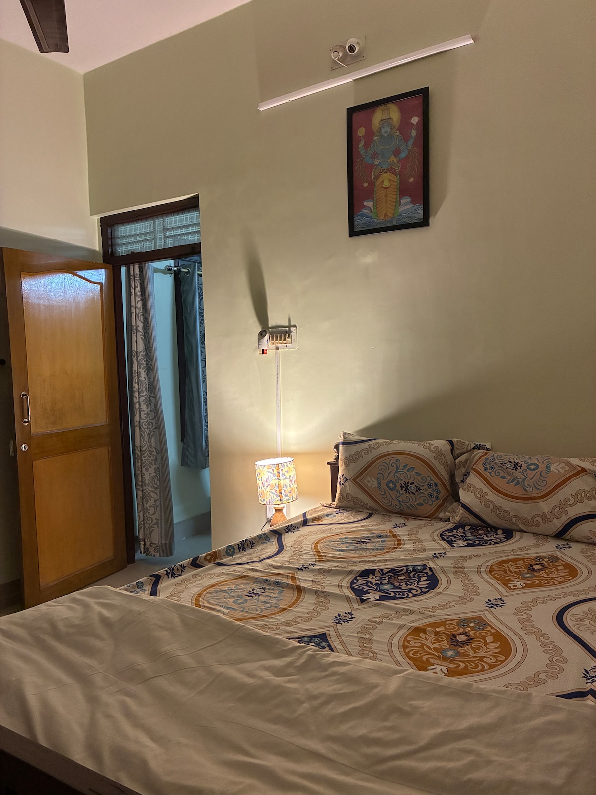 Disfruta de una habitación privada luminosa, espaciosa y espaciosa con baño adjunto, perfecta para una estancia cómoda y relajante. Este acogedor refugio está bañado por la luz natural todo el día, creando un ambiente refrescante y tranquilo. Características principales: ✔ Habitación privada con baño adjunto Comodidad ✔ con aire acondicionado para una estadía tranquila ✔ Wifi de alta velocidad para mantenerse conectado ✔ Amplio y bien ventilado con amplia luz natural ✔ Ideal para familias pequeñas que buscan una experiencia hogareña