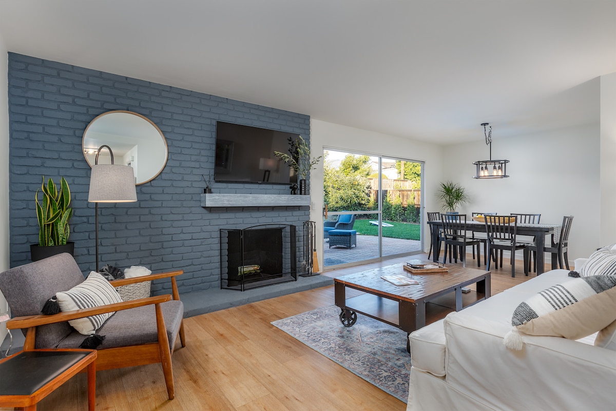 Modern, completely restored vacation haven with all new furnishings. Amazing art , of the moment furniture, and luxury bedding curated by a 25 time SuperHost to satisfy the most discerning traveler, Walking distance to both Mesa Lane Beach and Hendry's beach. Steps away from the the Douglas Family Preserve with 3 miles of ocean side hiking trails. At the end of a peaceful cul de sac, a quiet haven free of cars; super safe for kids! Furnished with everything you need for an amazing vacation!