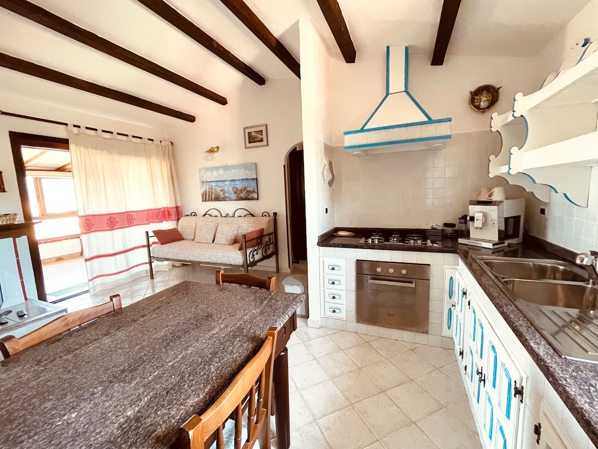 El apartamento "Ulivo" está ubicado en el primer piso, la única habitación luminosa con una mesa y un cómodo sofá cama, cocina americana separada con servicios esenciales, 1 baño completo con ducha. Zona de cama con un amplio armario, cómoda y mesitas de noche. Situado frente al mar, el apartamento "Ulivo" disfruta de una vista impresionante que abarca la esencia de Cerdeña. Equipado con wifi, televisor inteligente y, sobre todo, una gran terraza con hermosas vistas al mar.