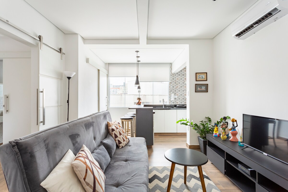 Relaxe neste espaço calmo e cheio de estilo. Mesmo se estiver chovendo você poderá aproveitar a vista infinita, o aconchego do sofá e todos os canais de streaming . O Prédio foi projetado por Artacho Jurado , e é um ícone da arquitetura . A vista do terraço é estonteante. O prédio é cercado facilidades como , padaria, farmácias. Late check out aos domingos. Relax in this calm and stylish space. Even if its raining , you'll able to enjoy the infinite view, cozy furniture and fast internet.