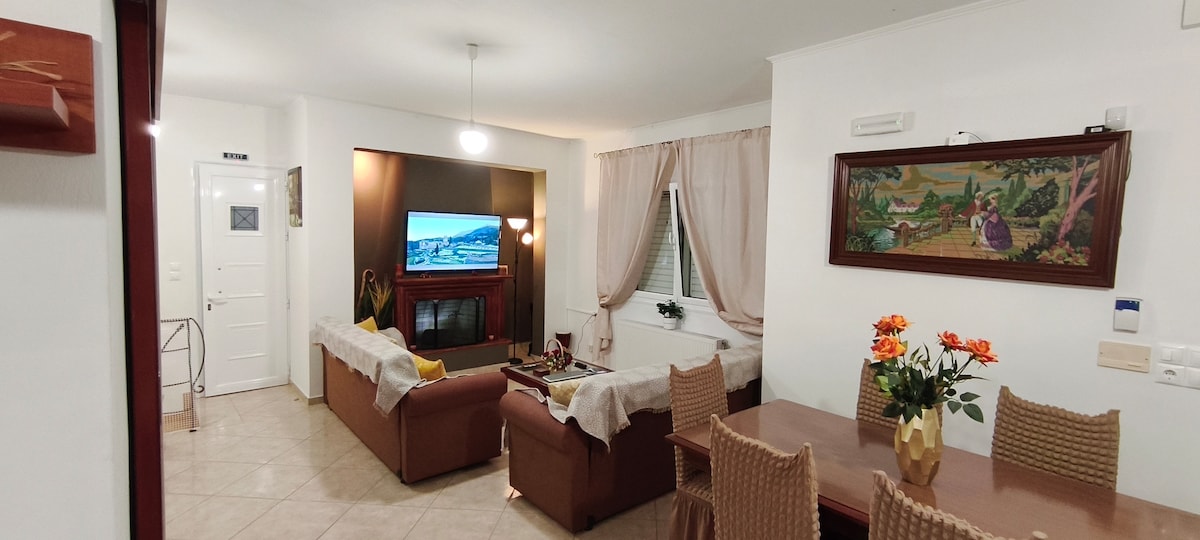 Trinity es una Maisonette muy espaciosa ubicada en el pueblo pesquero de Gournes, a 50 metros del mar, con 4 dormitorios y 2 baños. A 14 km del aeropuerto de Heraclión, a 15 km de la cosmopolita Hersonisos y junto al acuario de Creta ofrece acceso a todas las atracciones principales de Creta. Restaurantes, deportes acuáticos, playa de arena, supermercado, estación de autobuses, todo a poca distancia a pie. ¡Ideal para familias numerosas o grupos que deseen pasar unas vacaciones relajantes junto al mar!